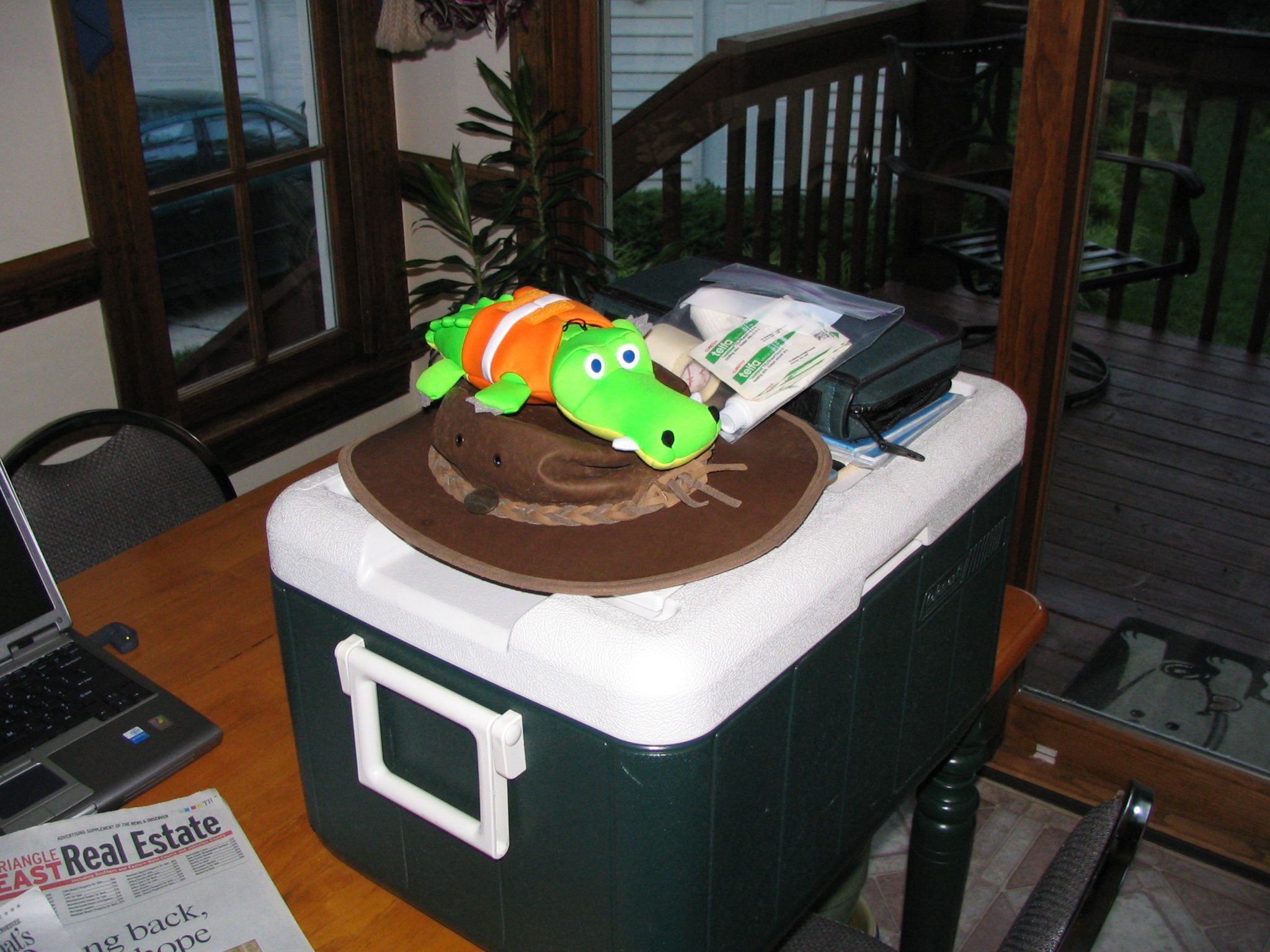 Here is Sebastian getting ready to go riding on his new home. We hope he likes us enough to keep us out of trouble. Of course when he squeeks, you can barely hear him :-) Seems to like the hat!