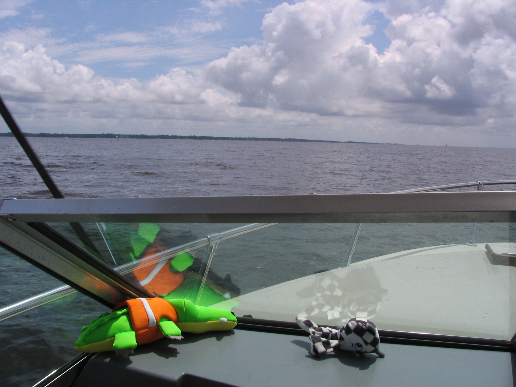 Our trip to the beginnings of Pamlico Sound. Had to go get her salty and wet and see what it was like in the bay. Well we did not actually get to the bay but went several miles down the river exploring. The Pamlico river is very wide and very shallow.