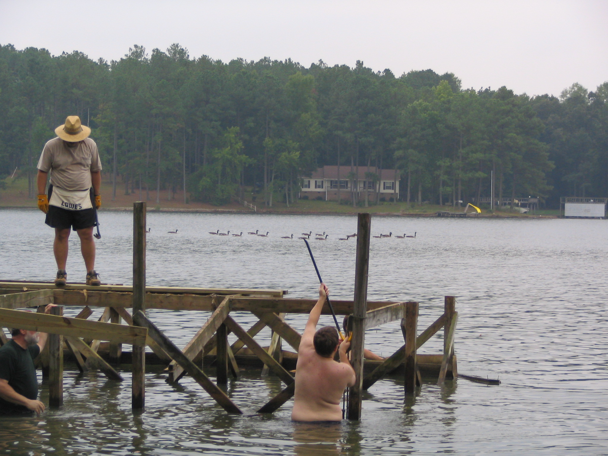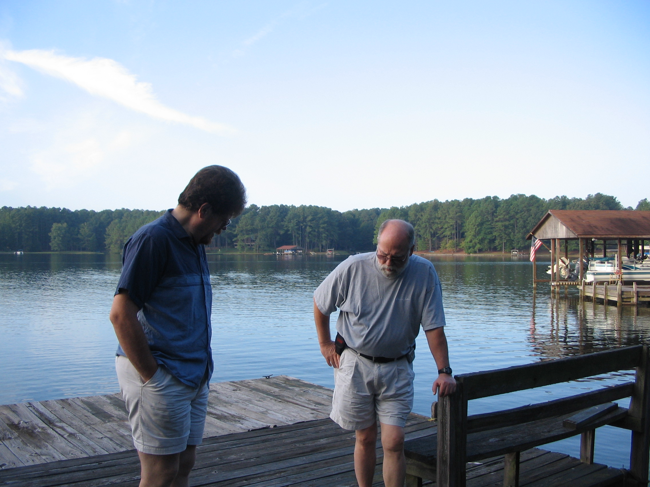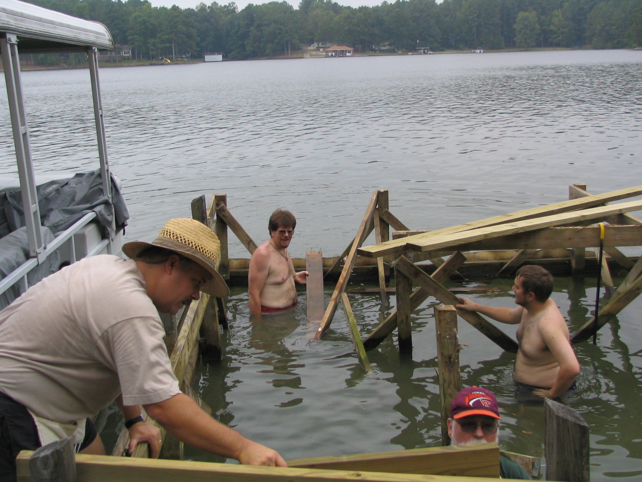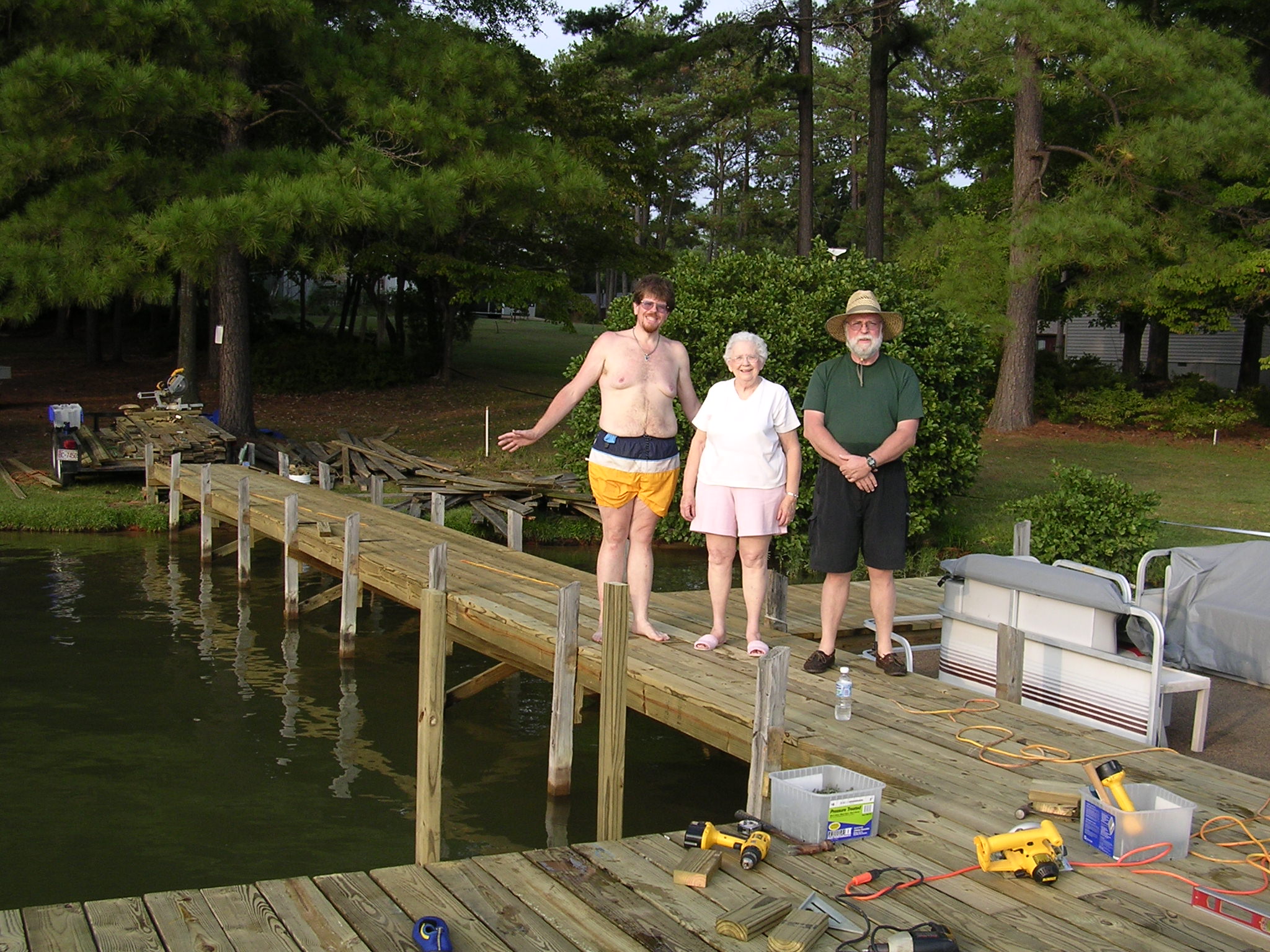 Bill and Evelyn Wesson requested some assistance rebuilding Bill's mother's deck. The deck at Jean's place on Lake Gaston needed some real help. Here Bill and I are looking at the current state of the dock and thinking about how the repair will get done.