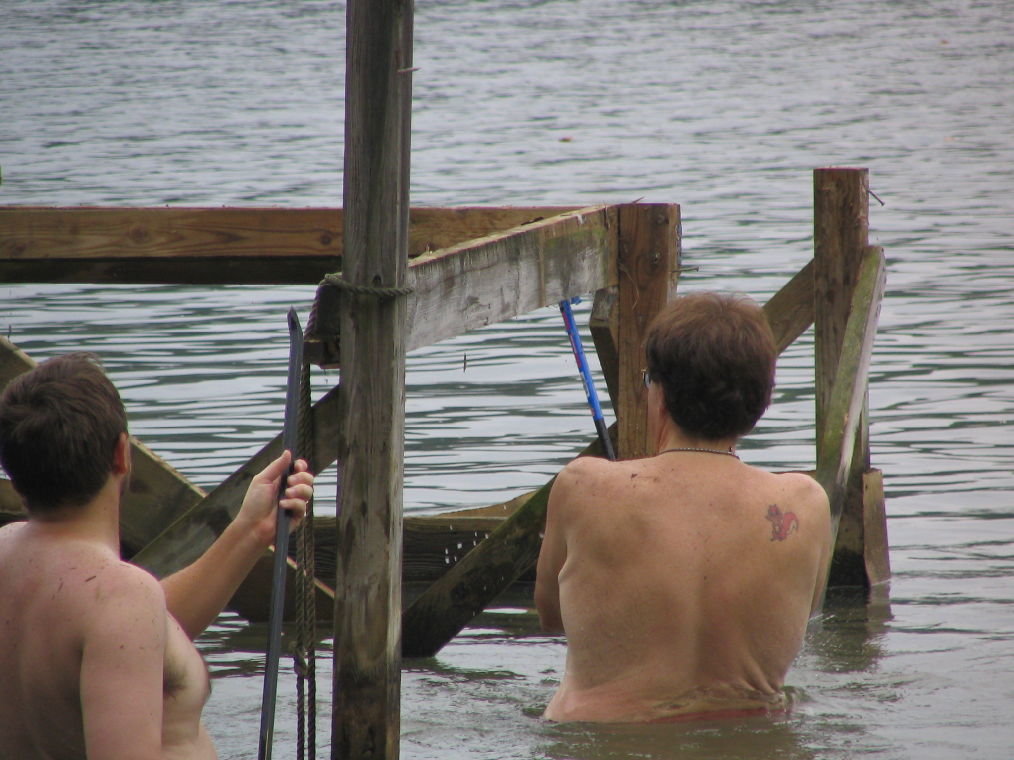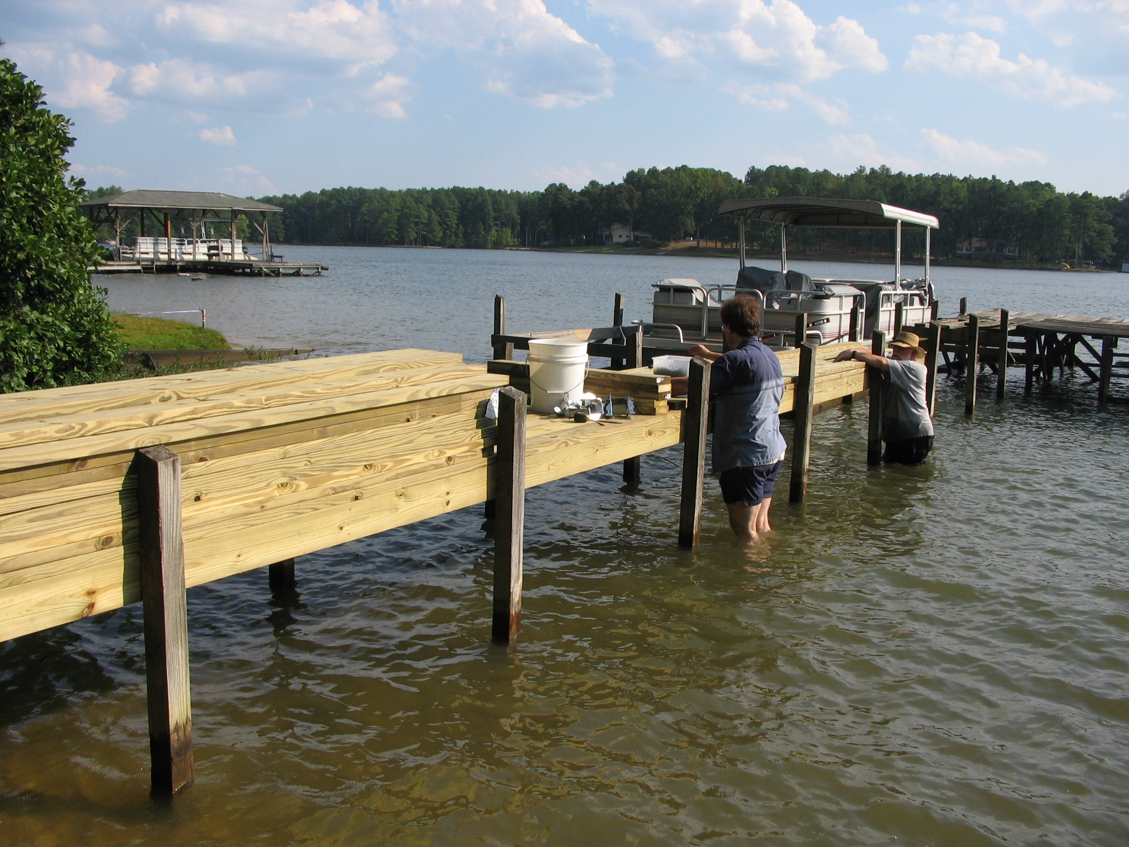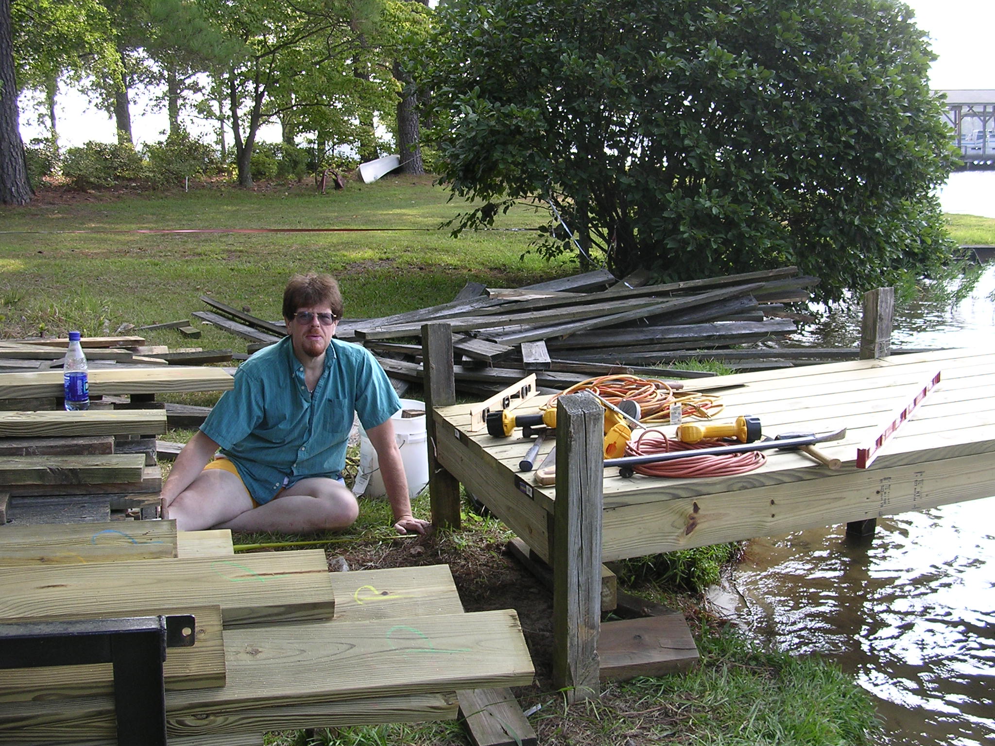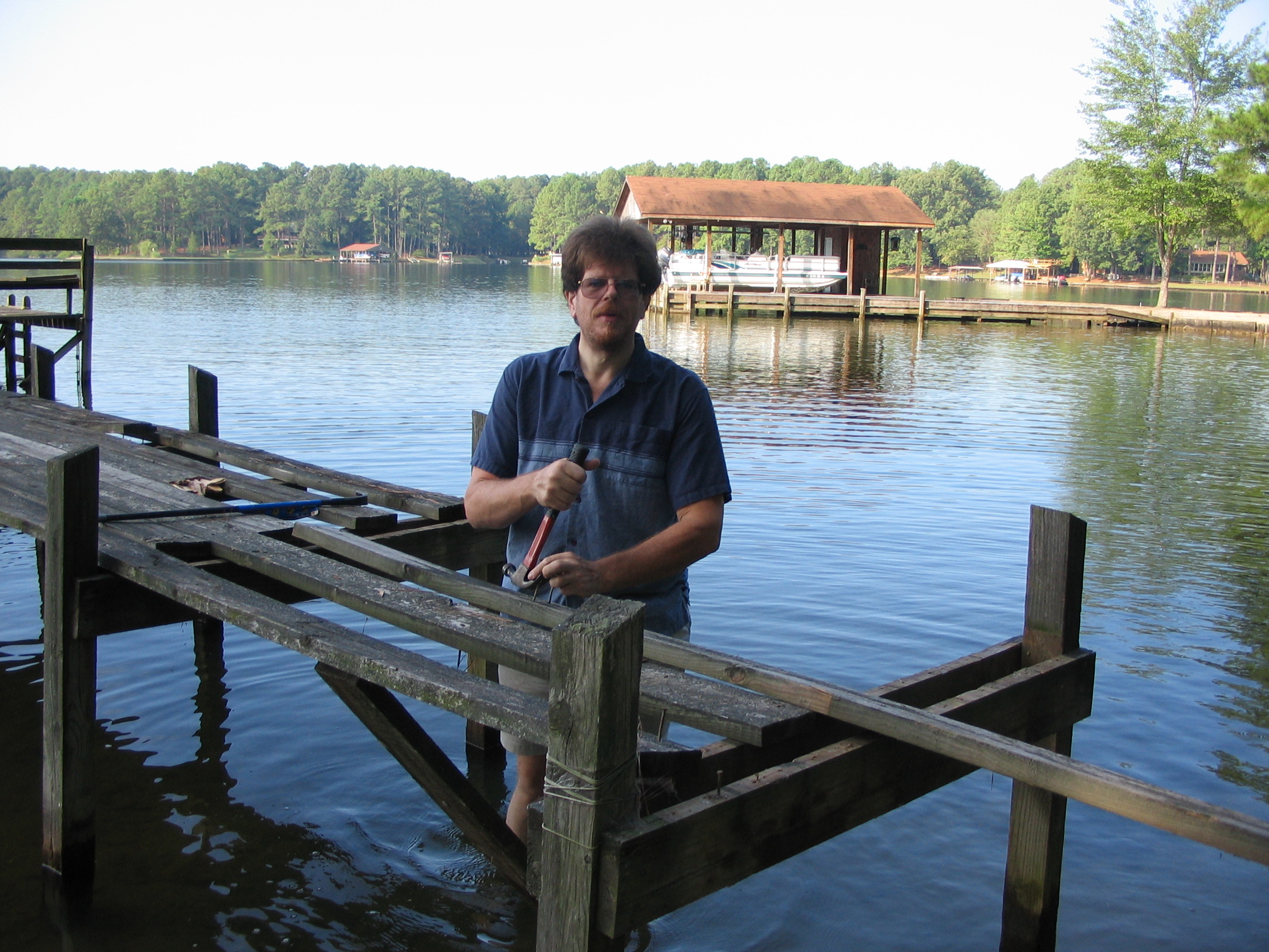 Bill and Evelyn Wesson requested some assistance rebuilding Bill's mother's deck. The deck at Jean's place on Lake Gaston needed some real help. Here Bill and I are looking at the current state of the dock and thinking about how the repair will get done.