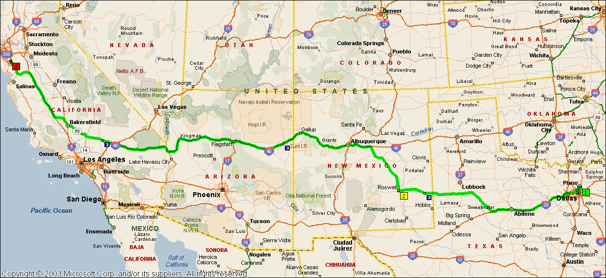Stayed in Roswell that first night out of Dallas. Continued the next day on the way to one of the longest days driving I had done in many years. After probably 16 hours of driving the rig west we ended up giving up at Barstow, Ca. Saw some fun things over the day. Snow in the mountains of New Mexico while riding through the range where Billy the Kid once road.